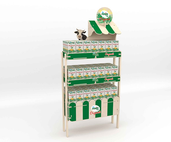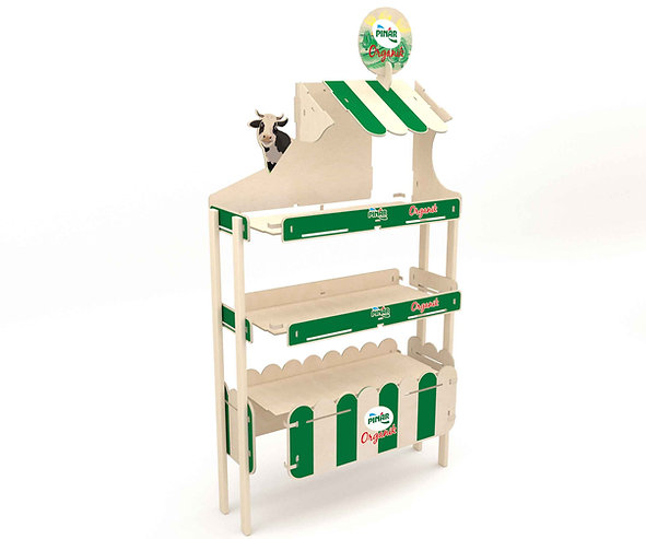 It is used as a product sales and visual support stand. It can be manufactured in any desired color and pattern.