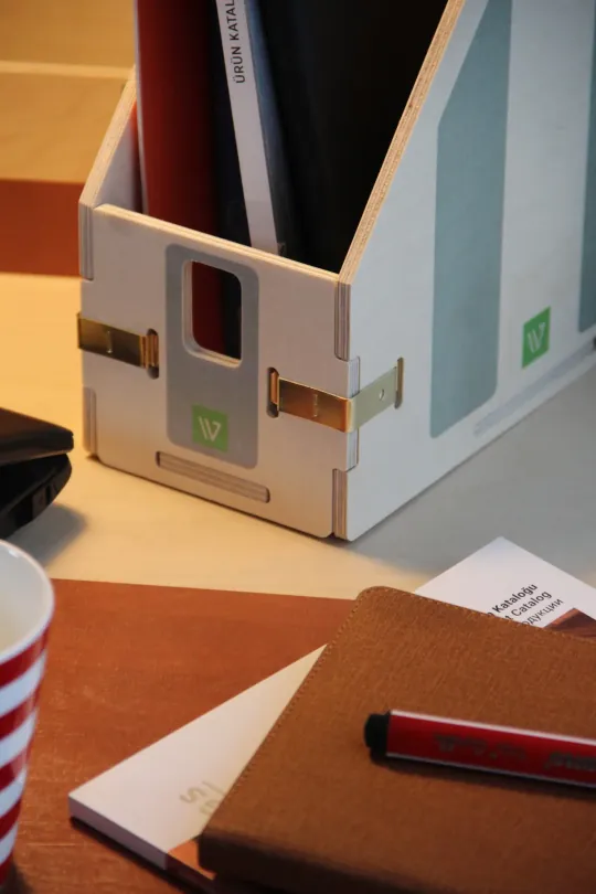 Aktenhalter aus Holz – Türkis